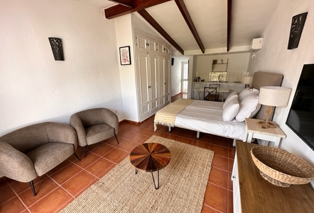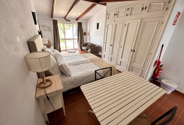 El estudio es apto para 1 o 2 personas y dispone de una cocina totalmente equipada y de un cuarto de baño independiente con bañera/ducha y aseo. Equipado con ropa de cama y toallas. Terraza con vistas a la piscina.
